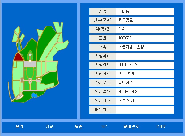 * 장인 국가유공자 故 白泰龍 본관 水原 (예) 육군 대위/ 군번 207367