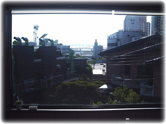 식당 2층에서 바라본 송도와 인천공항을 연결하는 다리