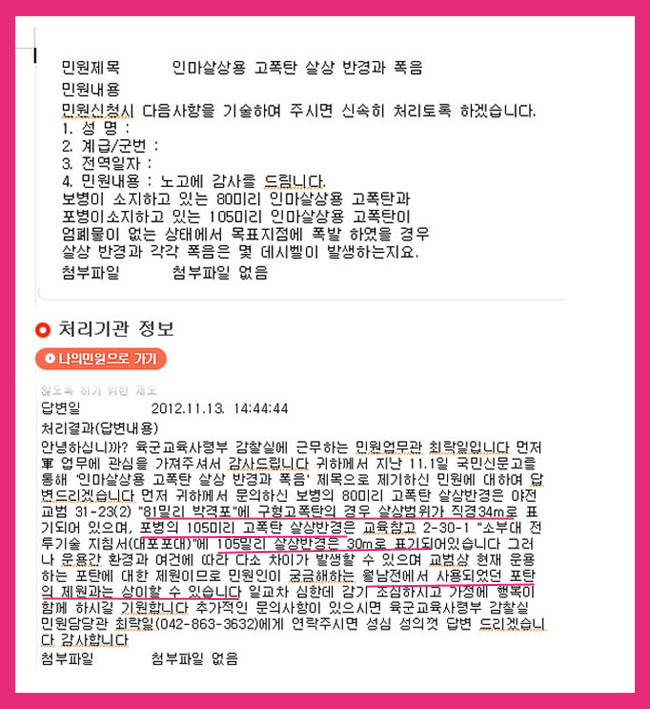 한국 해병제2여단 사령관 김연상 준장은 지역 사령관에게 , 자신이 조사했으며 사상자는 포병과 북 베트남군에 의한 것이라고 결론.포병 살상 반경을 국방부에 질의 답변 내용입니다.