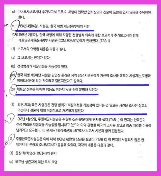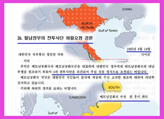 정말 그럴까? 8년8개월 동안 32만 베트남전 참전 용사들이 베트남 민간인들을 학살하러 갔다는 것일까? 아래 베트남공화국 수상 판후이콰트 파월요청 공한을 살펴보라 !