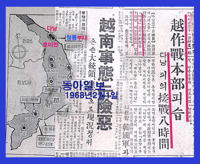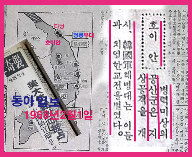 퐁니 퐁넛 사건을 다루기전 우선 그 당시 한국군 해병대가 주둔했던 호이안, 다낭 ,후에의 험악했었던 배경을 신문 보도를 통해서 살펴보자.