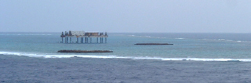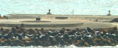 Okinotorishima island is located about 1,700 km from Tokyo. This island is not not big. In fact, there are 2 small rocks over the sea. They are called "Higashikojima" and "Kitakojima" and coverd by concrete so we can't see the rocks directly. There also a watchhouse near the rocks.
