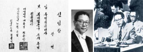 대한민국 제1호 대사(大使)의 신임장(letter of credence)은 현대 외교문서와는 모양과 형식이 크게 달랐다. 이승만 초대 대통령이 1949년에 장면(張勉·가운데 사진) 박사를 주미 대사로 인정해 달라며 미국 트루먼 대통령에게 보낸 신임장<왼쪽 사진>은 타자기도 아닌 붓글씨로 작성됐고, 세로로 쓰여 있었다. 이 대통령과 당시 임병직 외교부 장관의 붉은 도장도 찍혀 있었다. 장면 박사를 대한민국 1호 대사로 미국에 보낸 이 순간은 대한민국 62년 외교사의 중요 장면 중 하나였다.