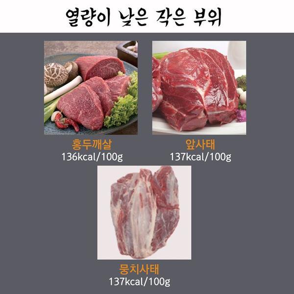 앞, 뒷다리 사골을 감싸는 부위인 사태는 근육다발이 모여 쫄깃하며 장시간 가열시 연해진다. 장조림, 찜, 육회, 탕에 적합하다.