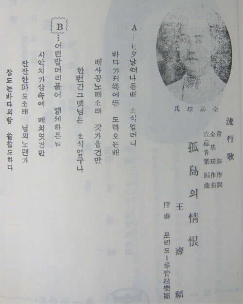일본 포리도-루(polydor) 조선지점 전속가수 왕수복