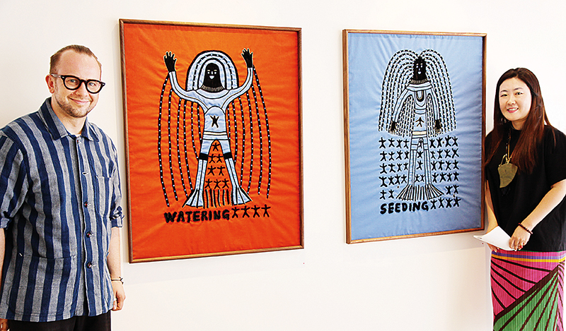 윤진초(40, 법명 여여) 작가와 대구 계명대 패션디자인과 교수 알렉산더 루쓰(38, 법명 은산) 부부는 이렇게 부부연을 맺었다. 윤 작가는 초등학교 때 외할머니랑 엄마 손잡고 대각사 어린이법회를 다니면서 부처님과 만났다. 꼬맹이 시절부터 윤 작가의 남다른 미술재능을 눈여겨봤던 대각사 회주 정호스님은 사춘기를 거쳐 유학을 결정하기까지 숱한 방황과 반항으로 흔들리는 그녀를 커다란 나무그늘처럼 안전하게 지켜준 어른이다. “뭐랄까요. 정호스님은 꼭 ‘어머니’ 같아요. 힘든 상황에 놓여 마음이 헝클어지거나 왜곡된 생각을 품게 될 때마다 예리하고 명확하게 제 자리를 짚어주셨어요. 참 따뜻하게 보살펴 주셨지요.”