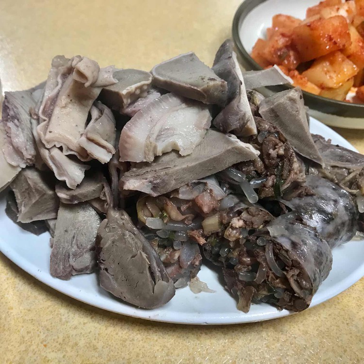성환 이화시장의 명물. 5일장이 열리는 날에도 맛볼 수 있고, 인기에 힘입어 따로 매장을 마련해 두어 언제든 먹을 수도 있습니다. 이곳의 순댓국은 돼지 머리뼈 베이스의 국물이면서도 너무 텁텁하지 않은 개운한 맛의 육수가 특징입니다. 간간한 국물에 양념장을 조금 넣어 섞어 먹으면 녹진하면서도 풍미가 좋은 국밥이 완성됩니다. 순대는 병천순대 스타일로 선지와 야채가 굵게 썰려 들어간 순대인데, 옛날 순대 특유의 구수한 맛이 좋습니다. 여기에 잘 익은 배추김치와 깍두기, 따로 양념을 더한 새우젓이 더해져 ‘인생 순댓국’이라고 평하는 손님들도 여럿 생겨납니다. 오일장터가 열리는 날에는 요리들이 일찍 품절될 수 있으니 방문 전 참고하면 좋습니다.