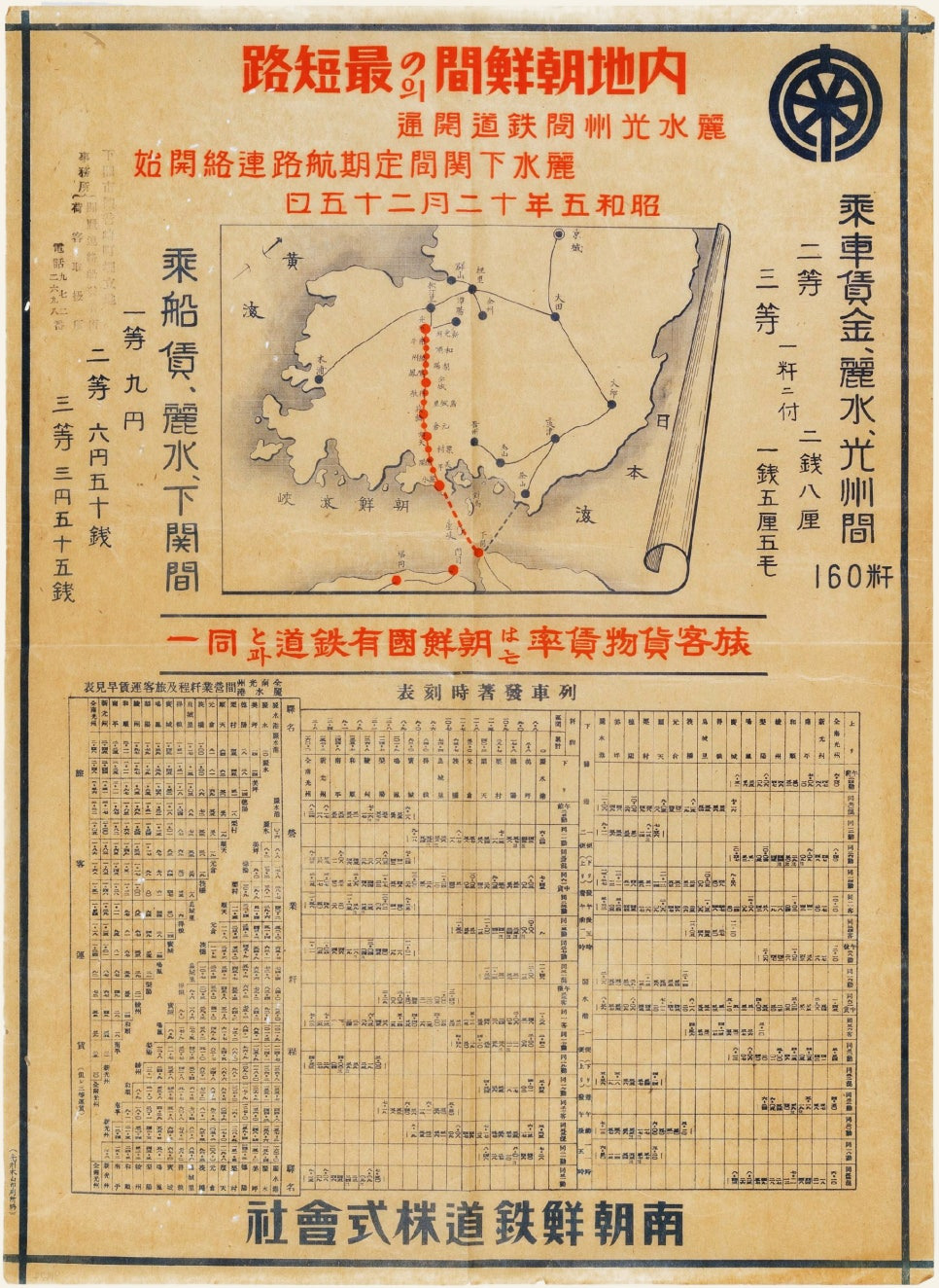 여수(麗水)-시모노세키(下關) 간 항로, 여수(麗水)-광주(光州) 간 철도 개통 안내