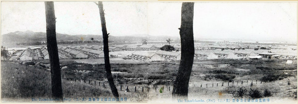 삼각지(三角地)에 인접한 남쪽 언덕 위에서 용산 일대의 시가지 전경을 파노라마 형태로 담은 4매 연속 사진엽서 중 하나로 일본군 병영지가 막 조성되던 초창기 무렵의 풍경입니다. 중앙에서 약간 오른쪽으로 지붕이 이중으로 솟아있는 건물은 용산정거장(龍山停車場) 역사이고, 오른쪽 끝 한강을 배경으로 여러 채의 지붕이 있는 곳은 용산철도공장(龍山鐵道工場)입니다. 왼쪽 끝에 여러 채의 밝은 색 지붕들이 모여 있는 곳은 철도국관사(鐵道局官舍) 구역이며, 그 오른쪽의 검은색 돔 지붕이 있는 건물은 용산우편국(龍山郵便局)이다.