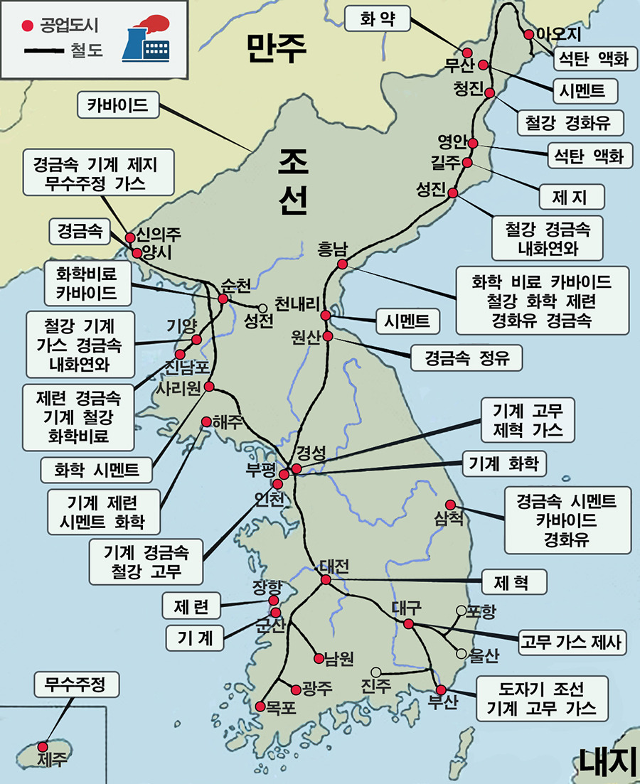 이렇게 조선의 산업시설 70%는 북한에 존재 했습니다. 바로. 이것이 1970년 중반까지 북한이 남한의 경제력을 앞섰던 이유입니다.
