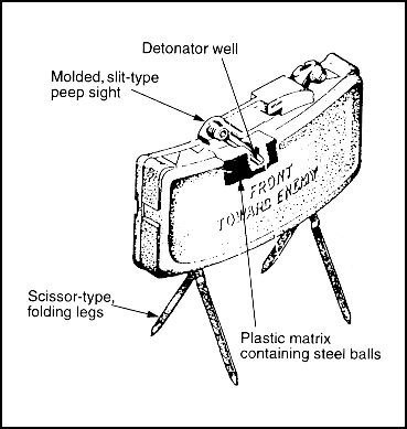 The M18A1 mine is primarily a defensive weapon. It may be employed to a limited extent in certain phases of offensive operations. The M18A1 has the same basic capabilities as antipersonnel mines and can be used in most situations where other types of antipersonnel mines are employed. In addition, the M18A1 has the capability of being sighted directionally to provide fragmentation over a specific area and does not necessarily rely upon chance detonation by the enemy. The M18A1 is adaptable for covering the ranges between maximum hand grenade throwing distance and the minimum safe distance of mortar and artillery supporting fires.The M18 antipersonnel mine is an earlier model of the M18A1 antipersonnel mine. The M18 antipersonnel mine comes in two versions--with or without a peep-sight; otherwise, both versions are identical. The mine is a curved, rectangular, plastic case and contains a layer of composition C3 explosive. It has a fragmentation face of rectangular steel fragments. The front face containing the steel fragments is designed to produce a fan-shaped spray which can be aimed at a prescribed target area. The electrical firing device issued with the M18 CLAYMORE is not safe. Due to its construction, it may cause premature detonation of the mine. Whenever possible, the battery holder (firing device) issued with the M18 mine should be replaced by a standard M57 firing device if the battery holder is used, both firing wires should be connected to one terminal until the desired moment of detonation.